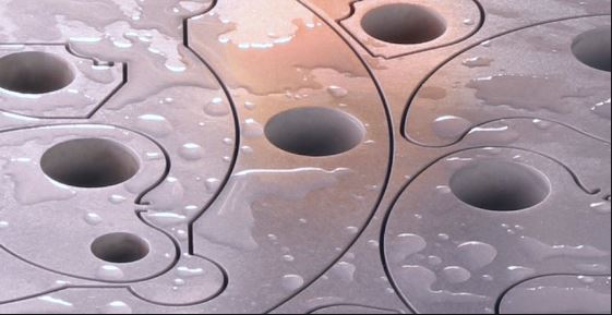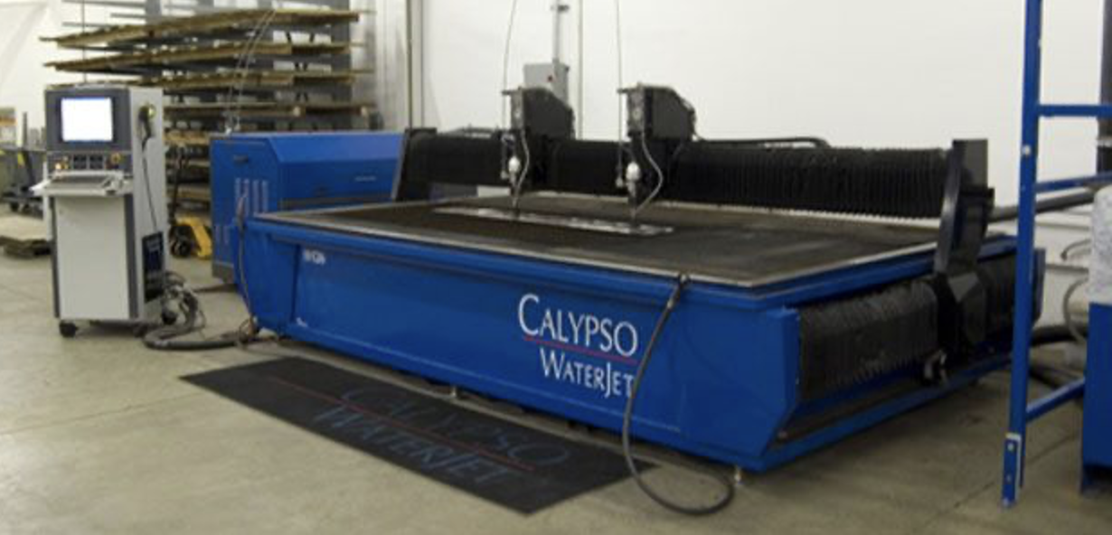 Our Calypso Water Jet has a cutting envelope 72’’ by 144’’ and pumps water to 60,000 psi resulting in an abrasive jet of sand and water exiting the mixing tube at roughly the speed of sound. We can cut accurate clean edges that allow for tight nesting and reduced scrap saving you money through greater material utilization.