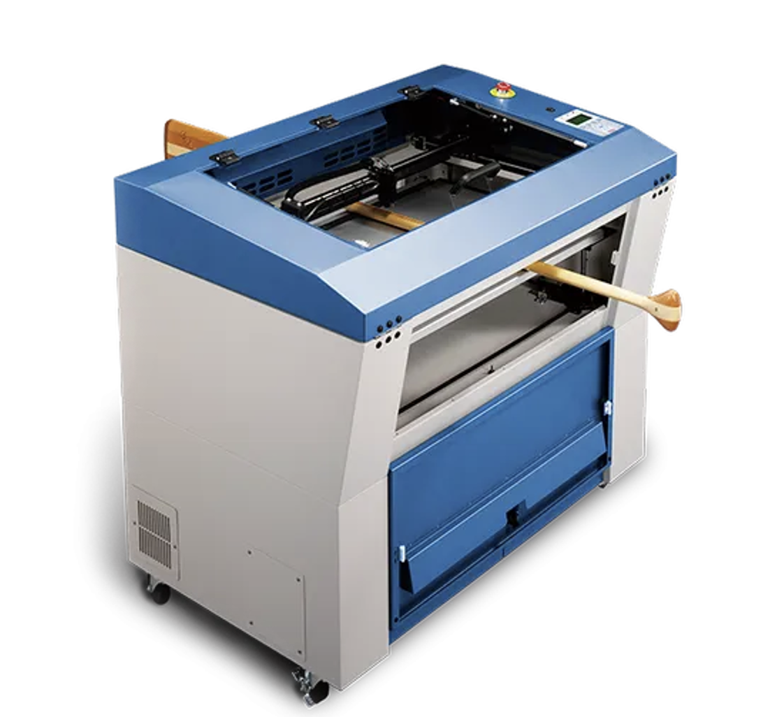 - The machine produces a concentrated beam of light using a laser source, typically a CO2 or fiber laser.